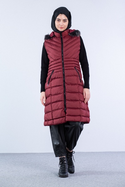 Kapüşonlu Çapraz Desen Yelek Füme - 1