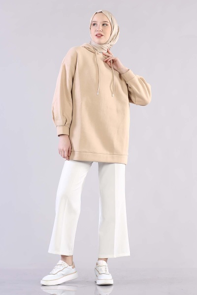 1081 Kapşonlu Tunik 38-44 - Bordo