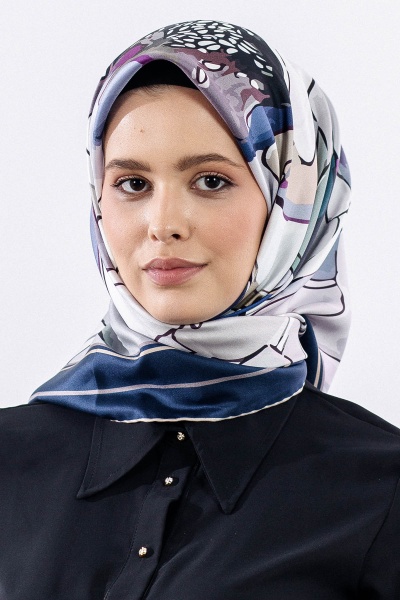12513 İpek Eşarp Tvıl Dokuma - Lacivert - 1