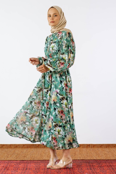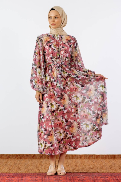 1713 şifon Elbise S-xl - Kahve - 5