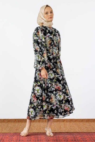 1713 şifon Elbise S-xl - Kahve - 2