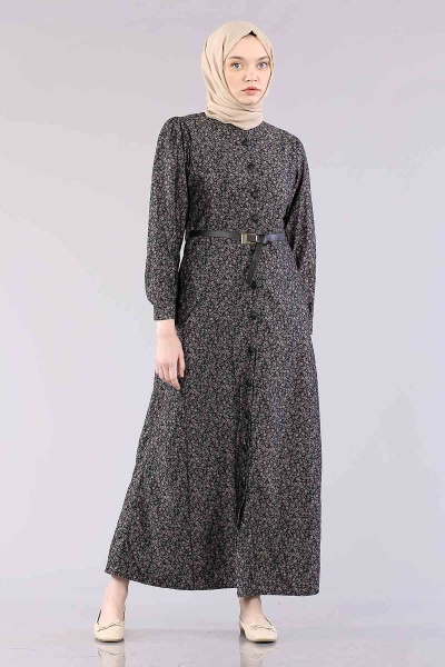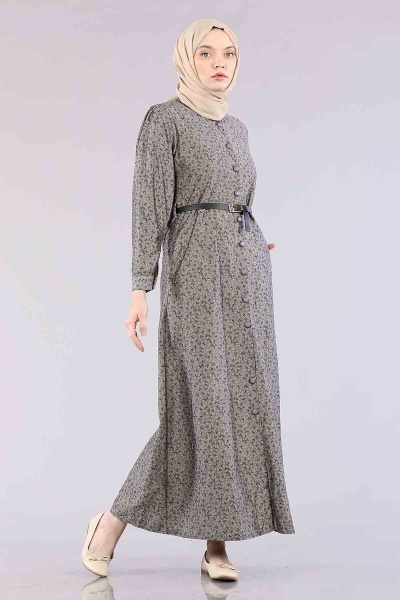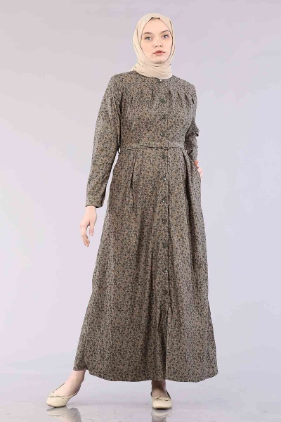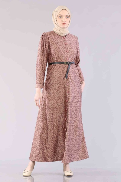 20344 Elbise 38-46 Düğme - S_kahve - 1