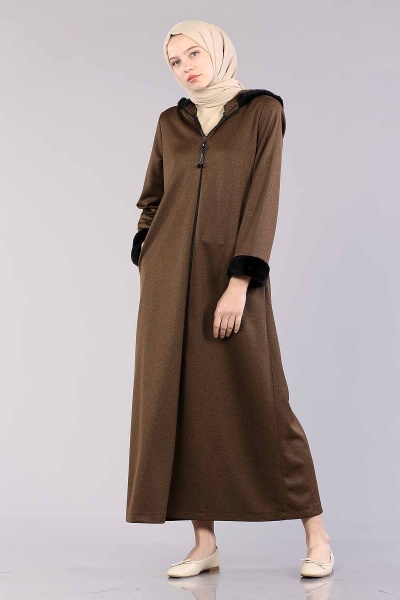2141 Kapşonlu Ferace 40-50 - Vizon