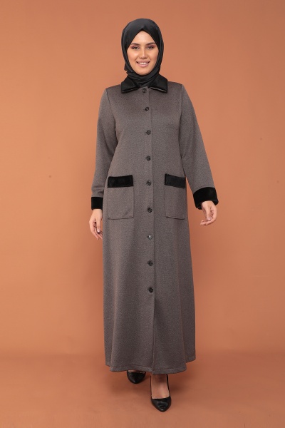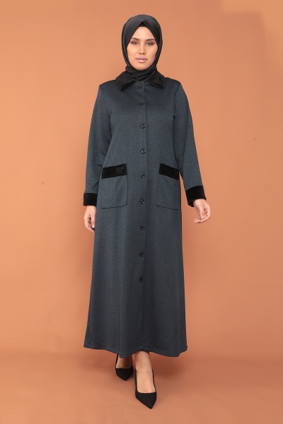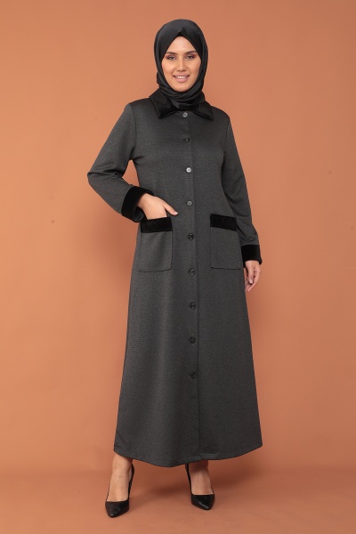2153 Kürklü Ferace 44-54 - Siyah - 1