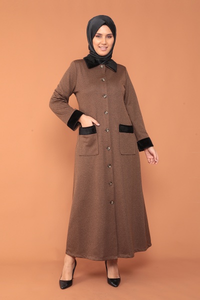 2153 Kürklü Ferace 44-54 - Siyah - 6