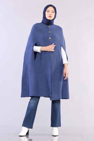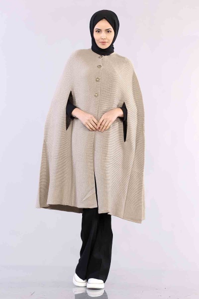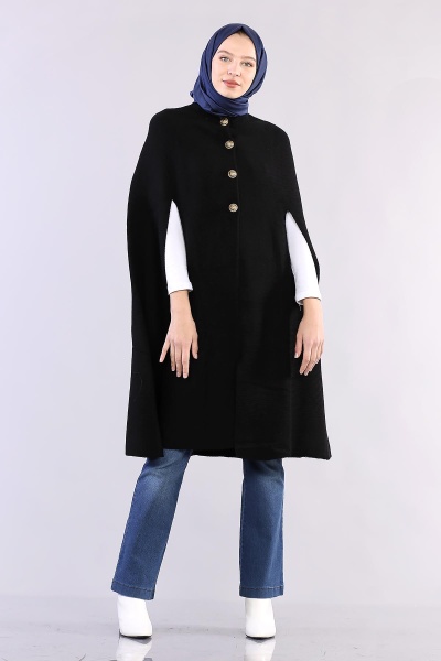2188 Düğmeli Pelerin Tek - Yesil