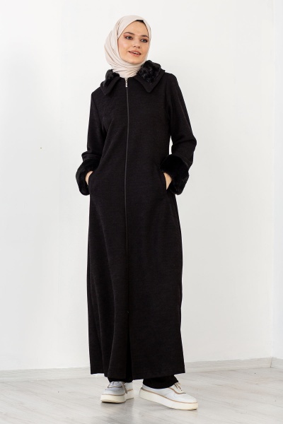 2195 Kürklü Ferace 42-52 - Gri - 1