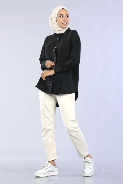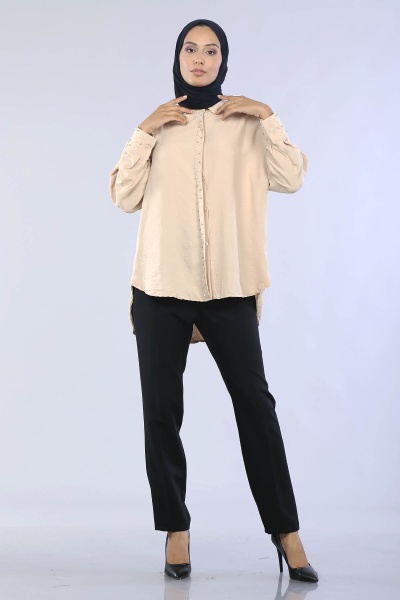 2259 İncili Gömlek 38-44 - Beyaz - 2