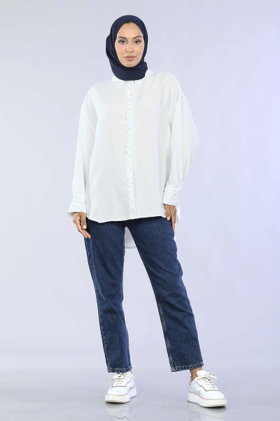 2259 İncili Gömlek 38-44 - Siyah - 2