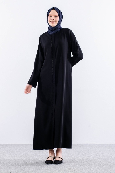 2302 şik Ferace 42-52 Boncuk Biye Detay - A_gri - 1