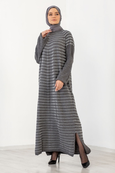 2483 Triko Simli Elbise Tek - Gul