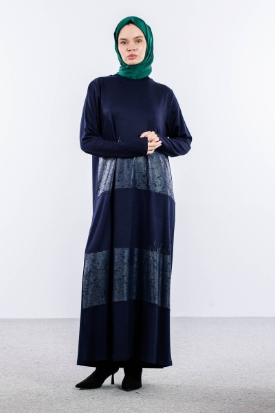 25113 Elbise 44-46-48 Deri Garni - Siyah_k.deri - 1