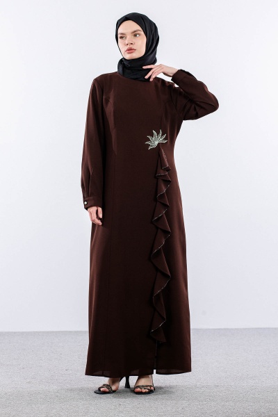 2547 Elbise 44-52 Şık Volan Detay - Lacivert - 5