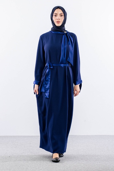 2555 Elbise 44-52 Flar Detay - Siyah