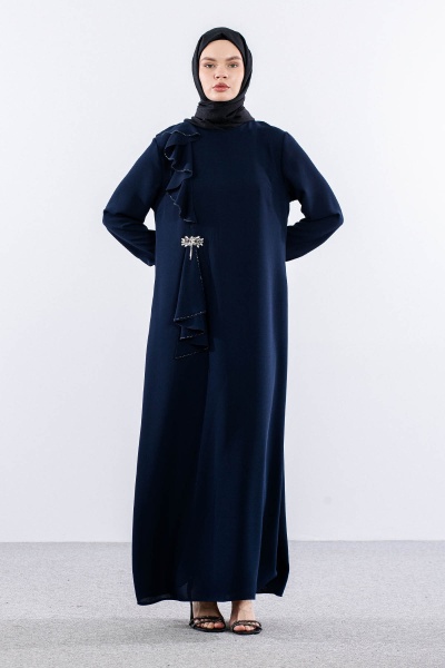 2559 Elbise 42-50 Şık Tas Detay - Siyah - 3