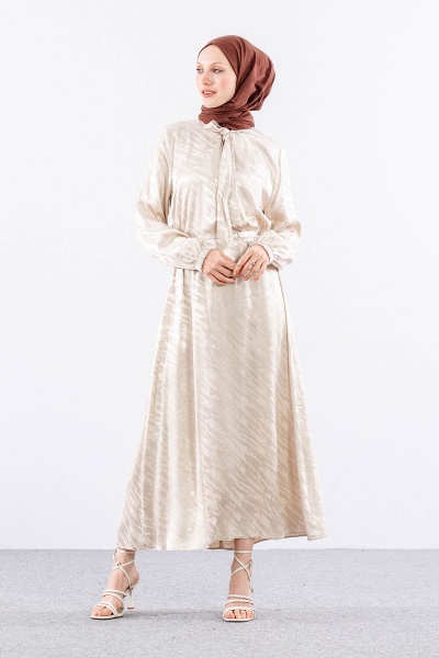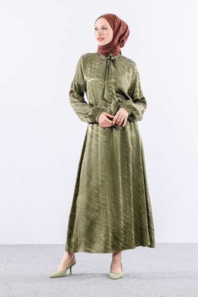 2575 Elbise 40-48 Saten Jakar - Siyah