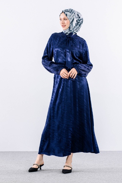 2575 Elbise 40-48 Saten Jakar - Siyah - 3