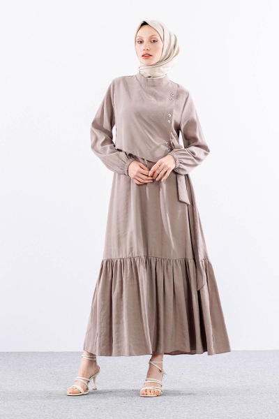 2576 Elbise 38-46 Aller Kuşgözü Detay - Siyah - 5