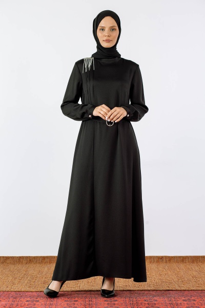 2660 Saten Elbise 42-50 - Antrasit - 1