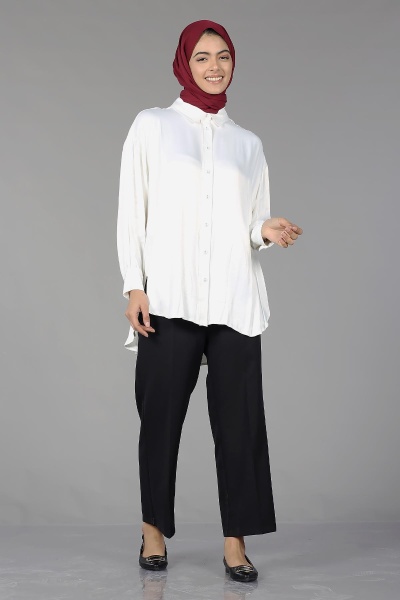 26985 Saten Gömlek Tek - Bej - 3
