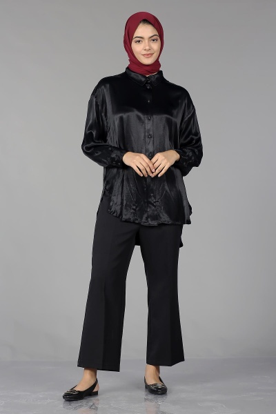 26985 Saten Gömlek Tek - Bej