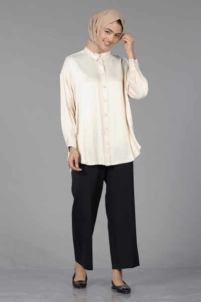 26985 Saten Gömlek Tek - Siyah