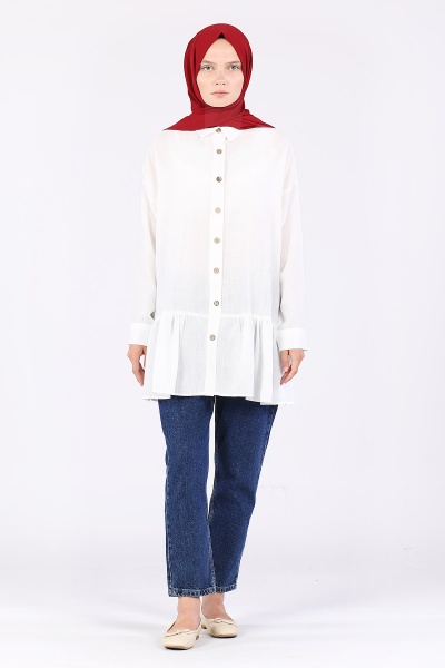 Eteği Büzgülü Kolu Manşetli Tunik Bej