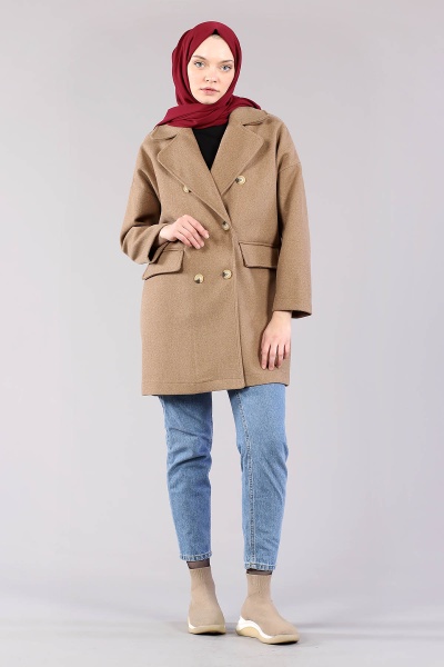 28175 Kruvaze Yaka Kap Tek - Camel - 2
