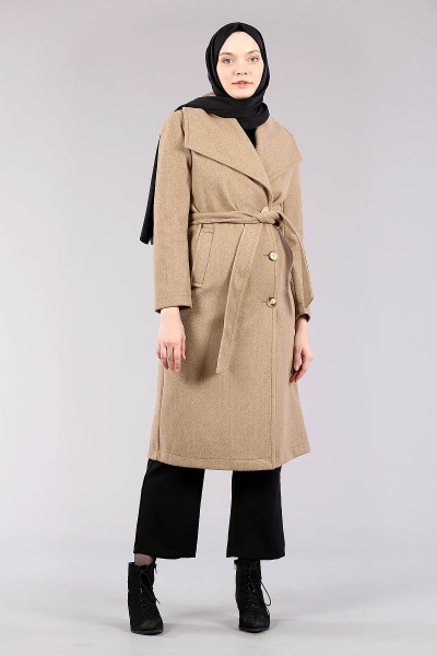 28311 Geniş Yaka Palto S-m-l-xl - Bej