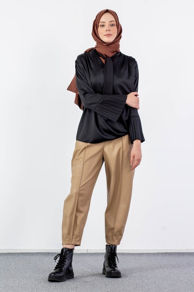2987-00 Saten Bluz 38-42 - Ekru