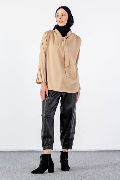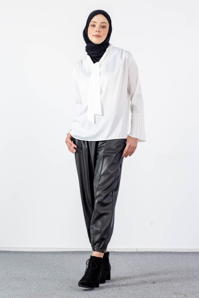 2987-00 Saten Bluz 38-42 - Siyah - 2