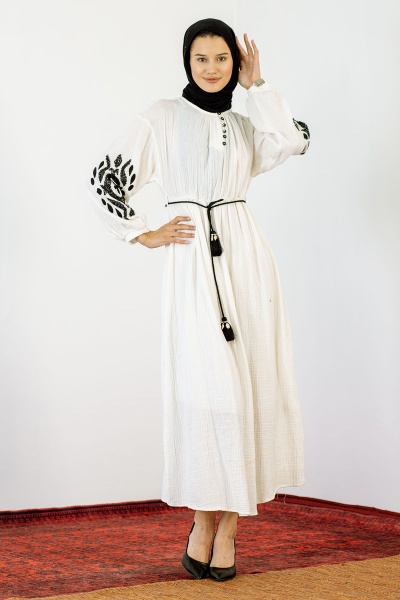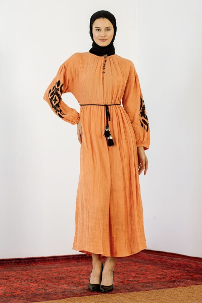 30498 Elbise S-m-l Kontrast - Mercan - 6