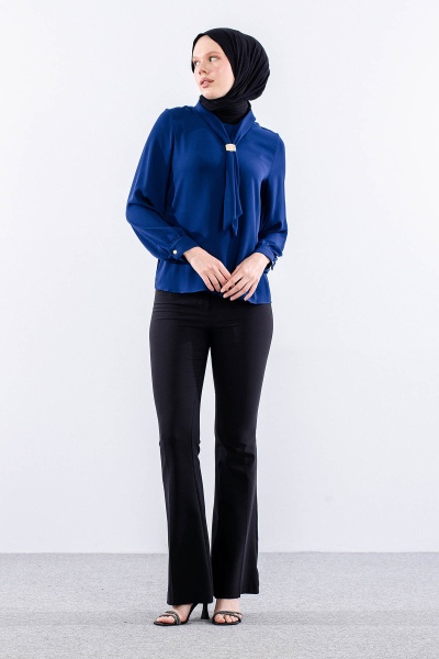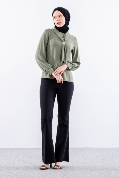 3077 Gömlek 38-46 Kravatlı - Kahve - 4
