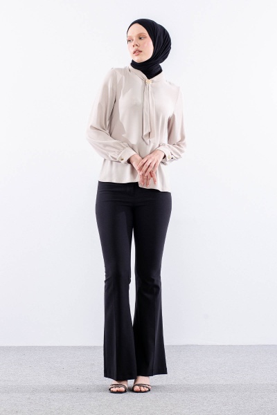 3077 Gömlek 38-46 Kravatlı - Kahve - 1