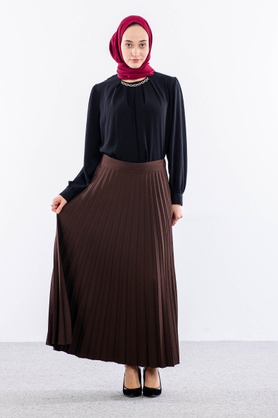 3322 Etek 38-48 Plise Detay - Lacivert - 1