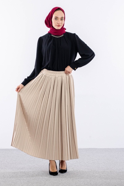 3347 Etek 1-2-3 Plise Detay - Vizon - 4
