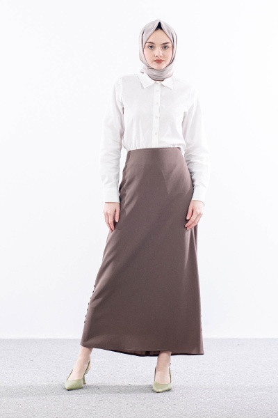 3349 Etek 42-52 Dugme Detay Kalem - Kahve
