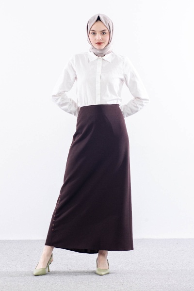 3349 Etek 42-52 Dugme Detay Kalem - Vizon - 2