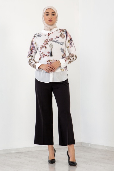 3364 Gömlekli Bluz 38-44 - Siyah - 3