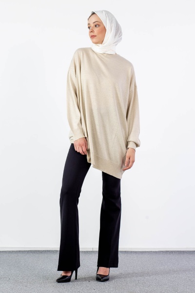 33827 Simli örme Tunik Tek - Lacivert - 2