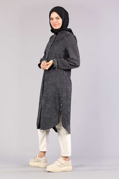 3394 Yan Düğme Tunik 40-48 - Siyah - 5
