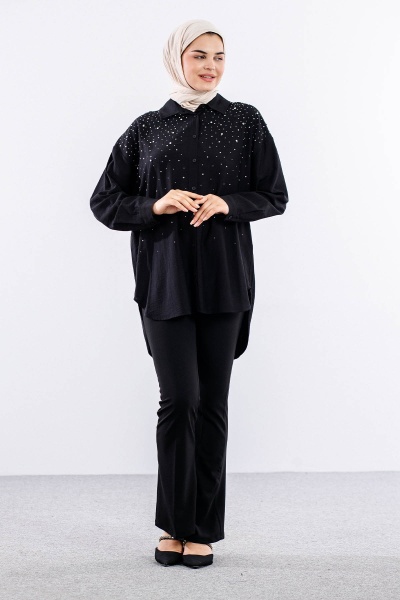 34818 Gömlek Tek Tas Detay - Ekru