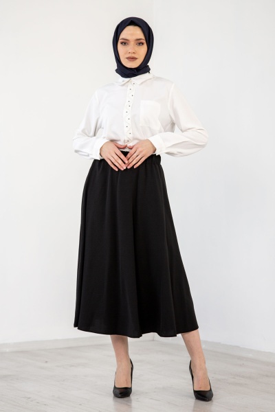 3499 İncili  Gömlek 38-44 - Siyah - 2