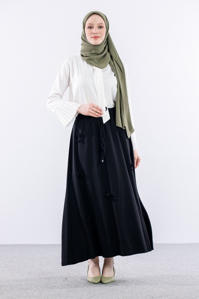 3633 Etek 38-48 Tencel Kumaş - Lacivert - 2