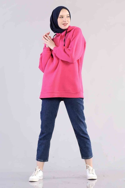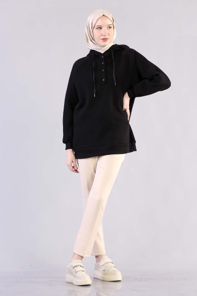 3804 Kapşonlu Tunik Tek - Kahve - 1