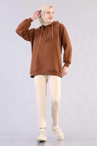 3804 Kapşonlu Tunik Tek - Siyah - 1