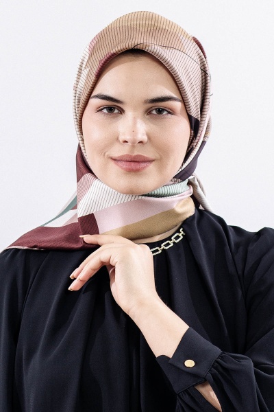 3838 İpek Eşarp 90*90 Tvıl Dokuma - Kahve - 1