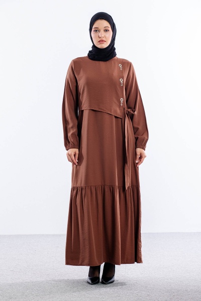 4011 Elbise 42-50 Kusgozu - Bej
