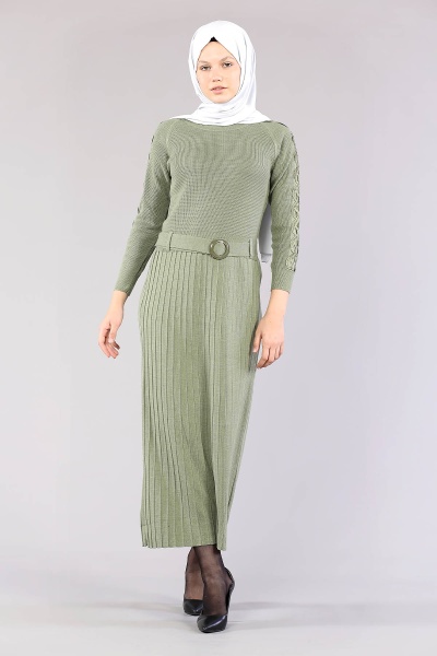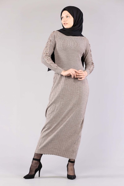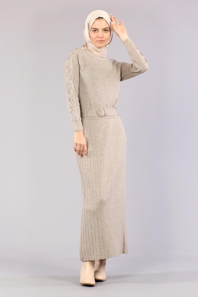 4049 Triko Elbise Tek - Pudra