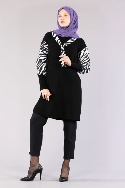 4063 Zebra Garnili Tunik Tek - Gul